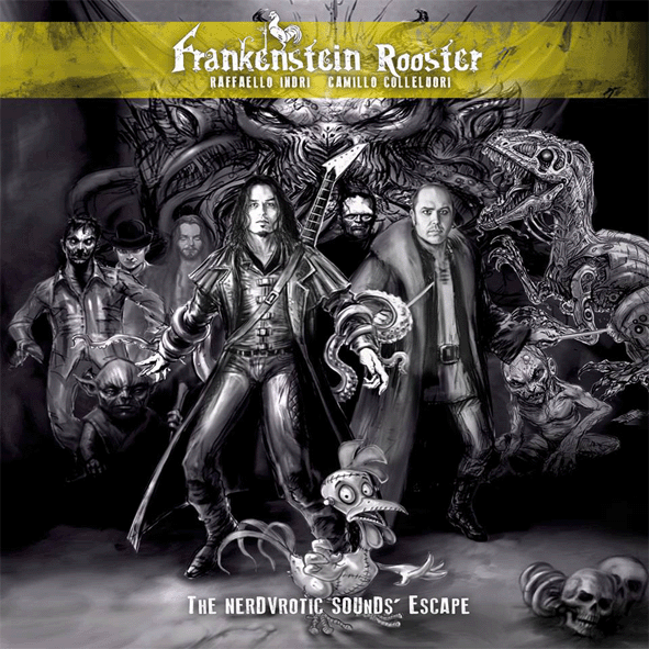 Frankeinstein Rooster : " the nerdvrotic sounds escape" CD 2015 . Guitar album with movie samples. A funny cover made up in black and white from pencils I guess. The begining of the album make me think of Lonero melodies then the funny licks are coming and then the guitar keep speaking. Very melodic and with a sense of humour only with a guitar and of course a full band. Then it makes me think of Nili Brosh with those funky jazzy riffs. a mix of guitarists sounds... a great album. 100/100